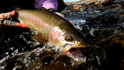 There have been a dozen times (perhaps my guide would say more) when we finally find a fish, he's moving around feeding, and therefore "catchable". I get into position, get the line out, false cast out to the side of the fish carefully measuring my line only then to drop it either too close or too far upstream, too far right, or too far left. On occasion when I do drop it exactly where I want it, the current grabs it and it either pulls it out of his feeding lane or it drags. If everything is perfect (and I do mean everything), then the fish will usually eat the fly. If I continue to be lucky I will strike at the right nano-second and hook the fish. Then it's a contest to see who is the fittest - him as he races upstream and down or me as I try to dance across the rocks both wet and dry trying to stay connected. Once in a while I win, once in a while he wins.
